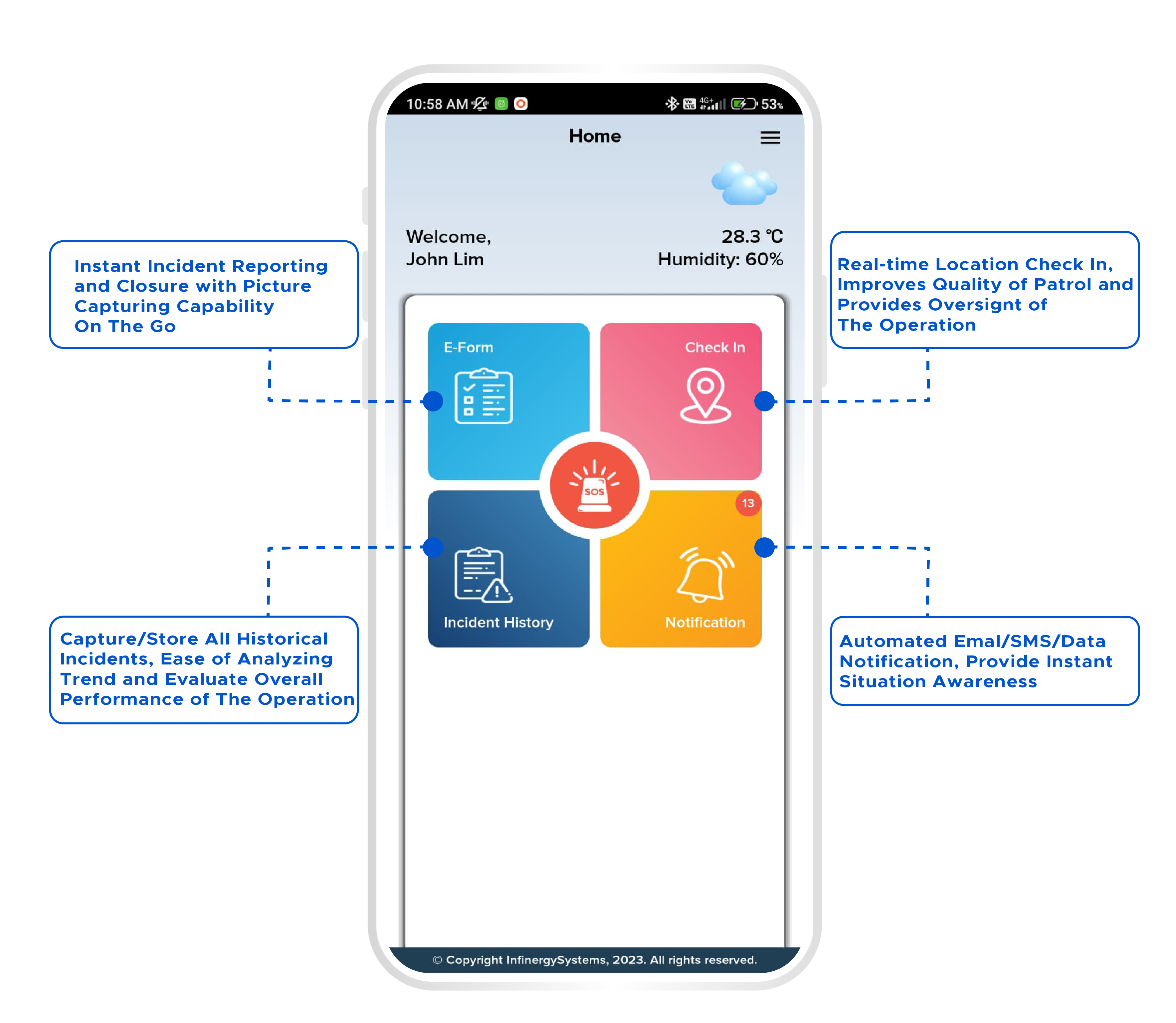 Guard Trek gives security officers the ability to make specific and custom notes as part of an incident report. Photos and signatures can be appended to any incident report